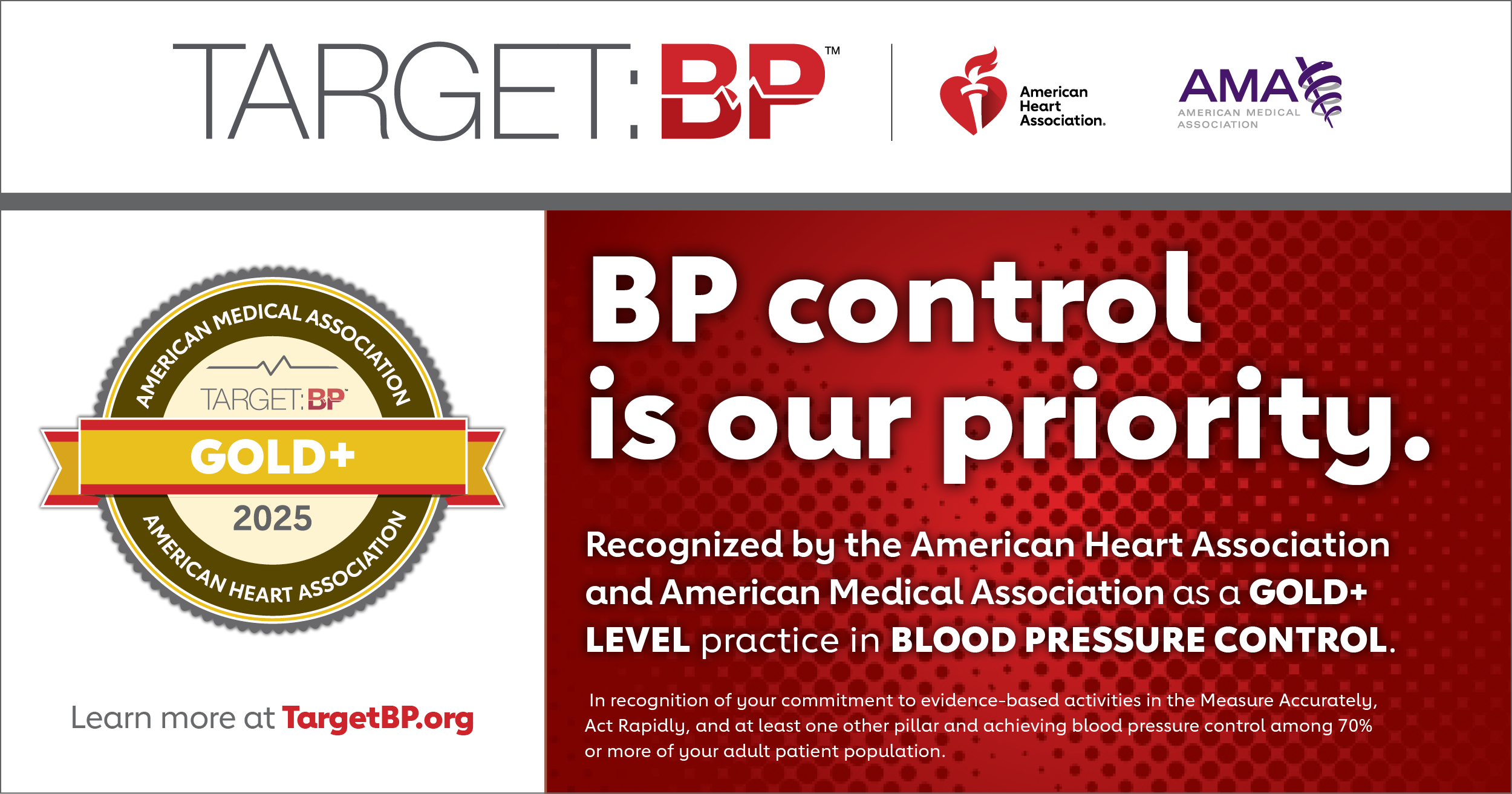 The American Heart Association and American Medical Association recognize and appreciate your commitment to decreasing the number of Americans living with uncontrolled blood pressure.