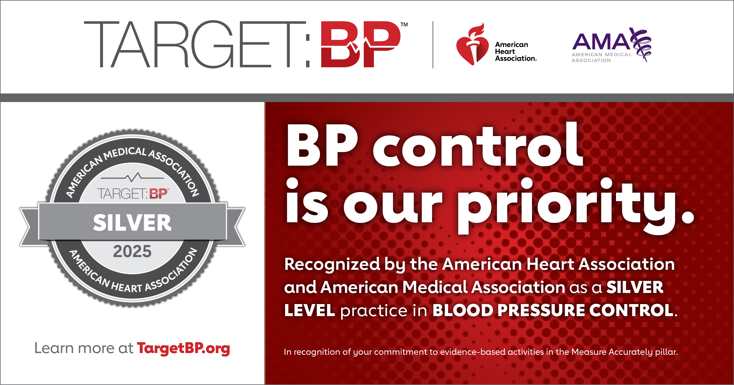 The American Heart Association and American Medical Association recognize and appreciate your commitment to decreasing the number of Americans living with uncontrolled blood pressure.