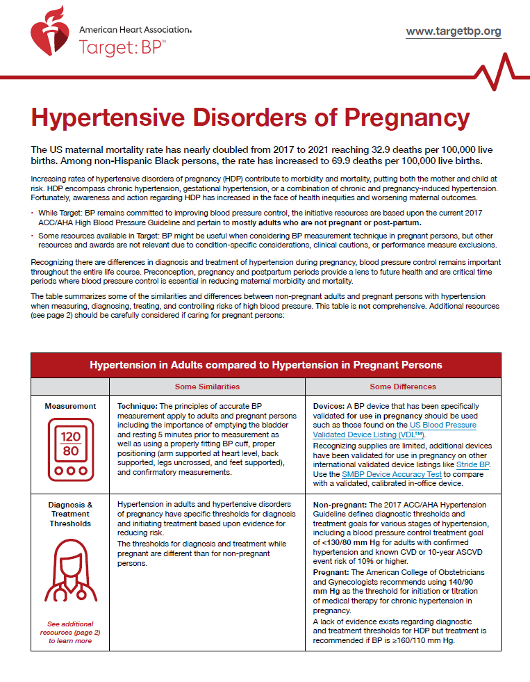 The overall US maternal mortality rate fell significantly in 2023 to 18.6 deaths per 100,000 live births. However, among non-Hispanic Black persons, the rate has increased to 50.3 deaths per 100,00 live births. This document outlines the guidelines and best practices to help healthcare professionals better address Hypertension in pregnant persons.