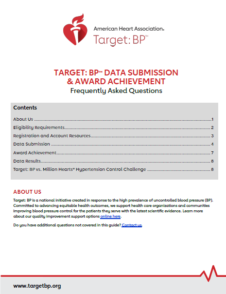 Frequently asked questions about the Target: BP data submission process and award achievement requirements.